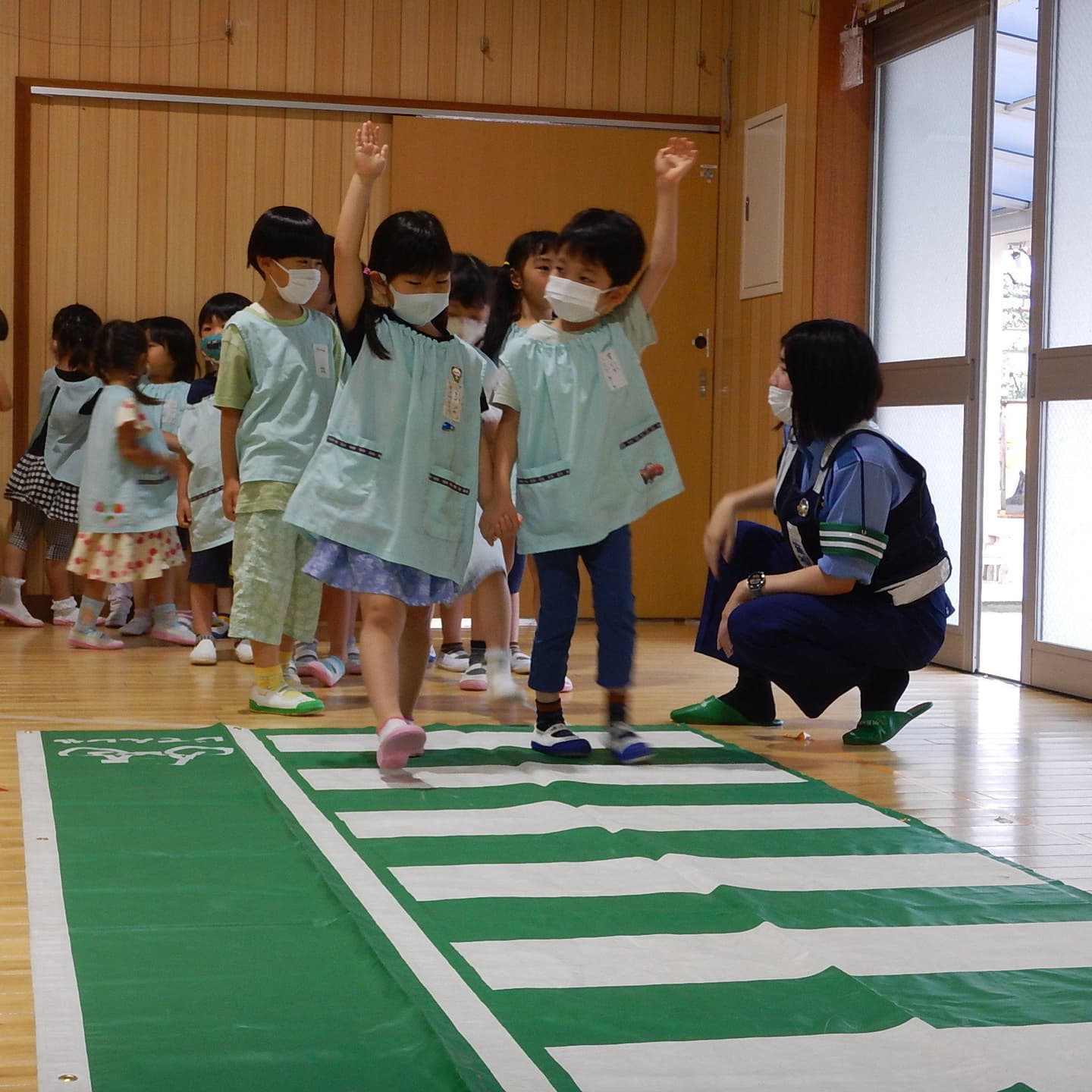 事故に遭わないように安全に過ごせるように車の近くで遊ばないことや、道路に飛び出さない等のお話をして行きます。
