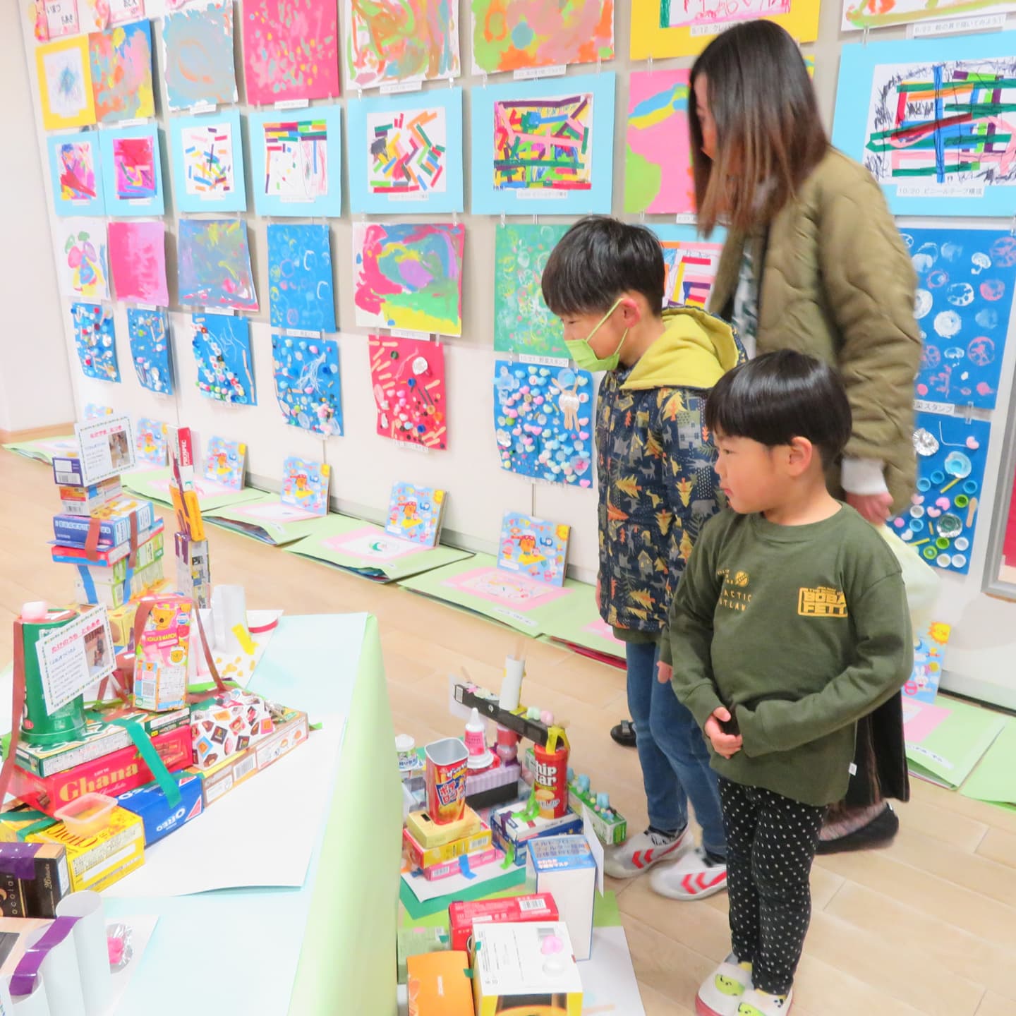 1年間の造形活動の展示をします。ご家族でお越し頂きお楽しみ下さい。年長組さんは体育館に約1ヶ月かけて、チームごとに大きな制作物をつくります。テーマが決まったら、設計図を作成、組み立て、色塗りなど、制作の様子は動画でご覧いただけます。