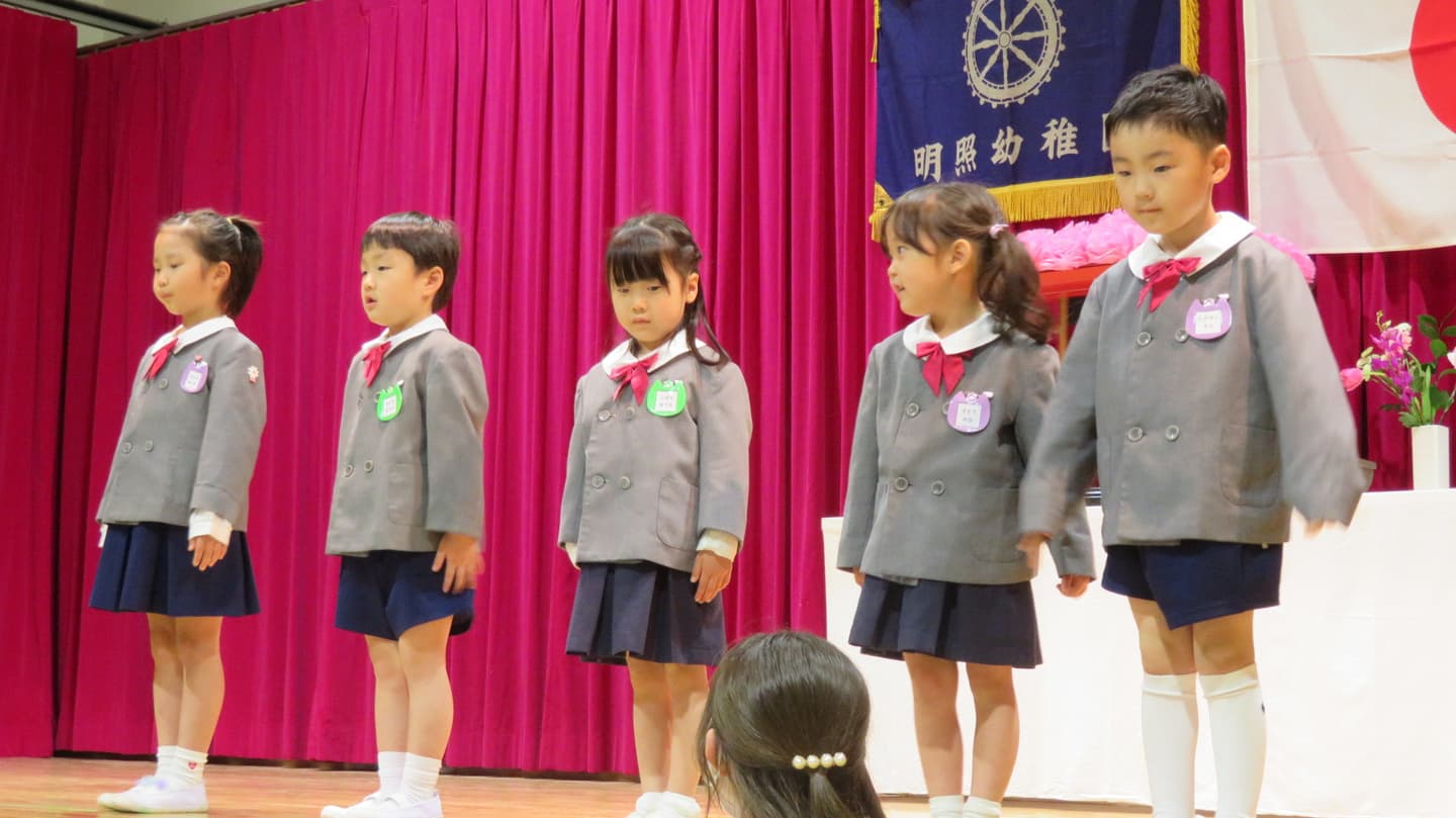 普段は、私服の上に制服の上着だけを着て登園しています。登園後、スモックに着替えて遊んでいます。行事の時や誕生会の時は上下全ての制服を着てくる日としています。体操の日は体操着での登園です。